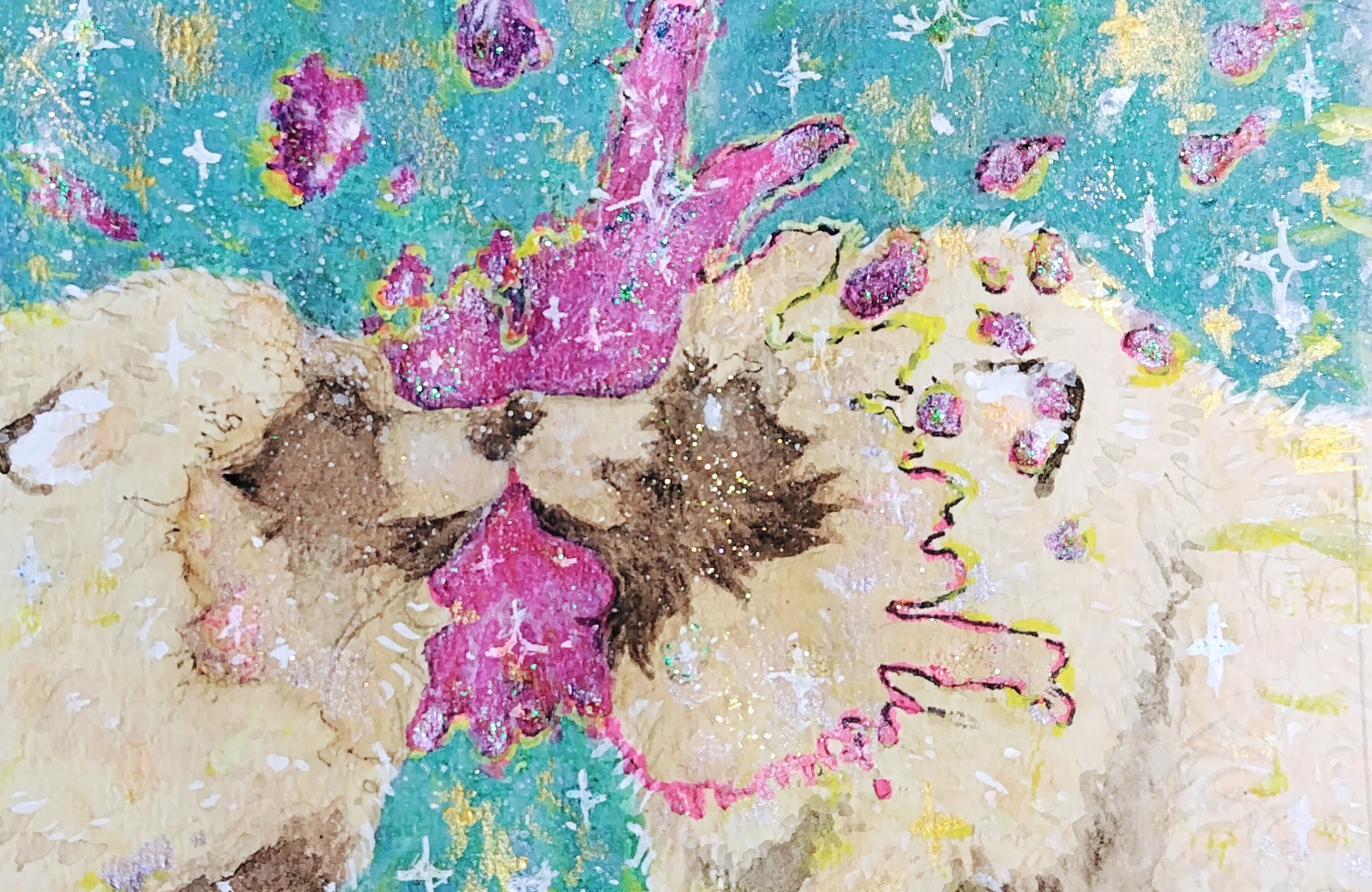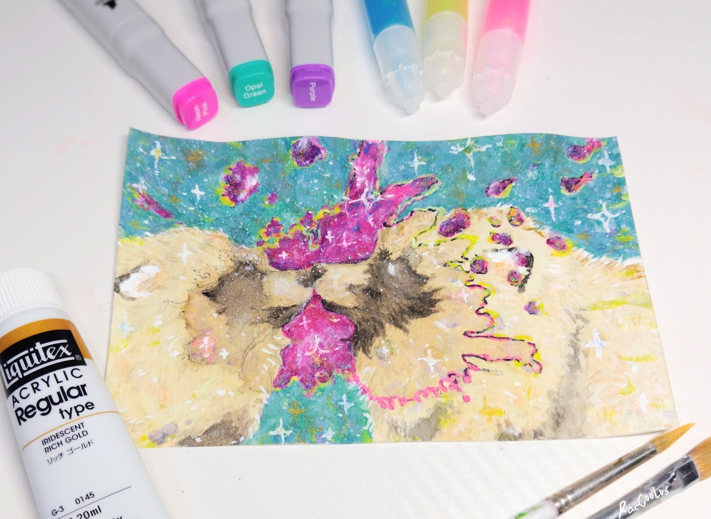 水彩紙にアクリル絵の具で描いた、原画作品になります。