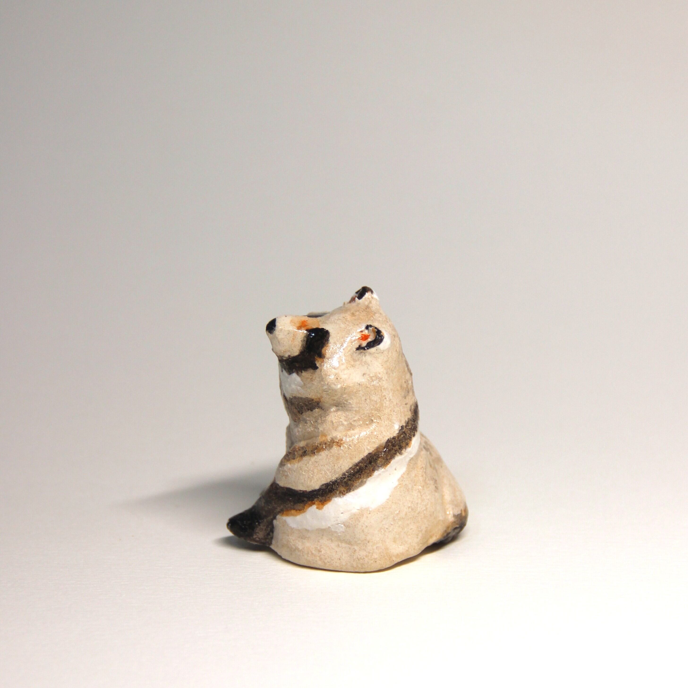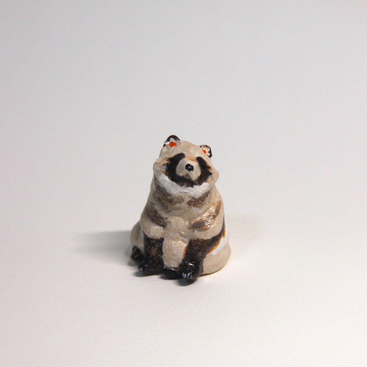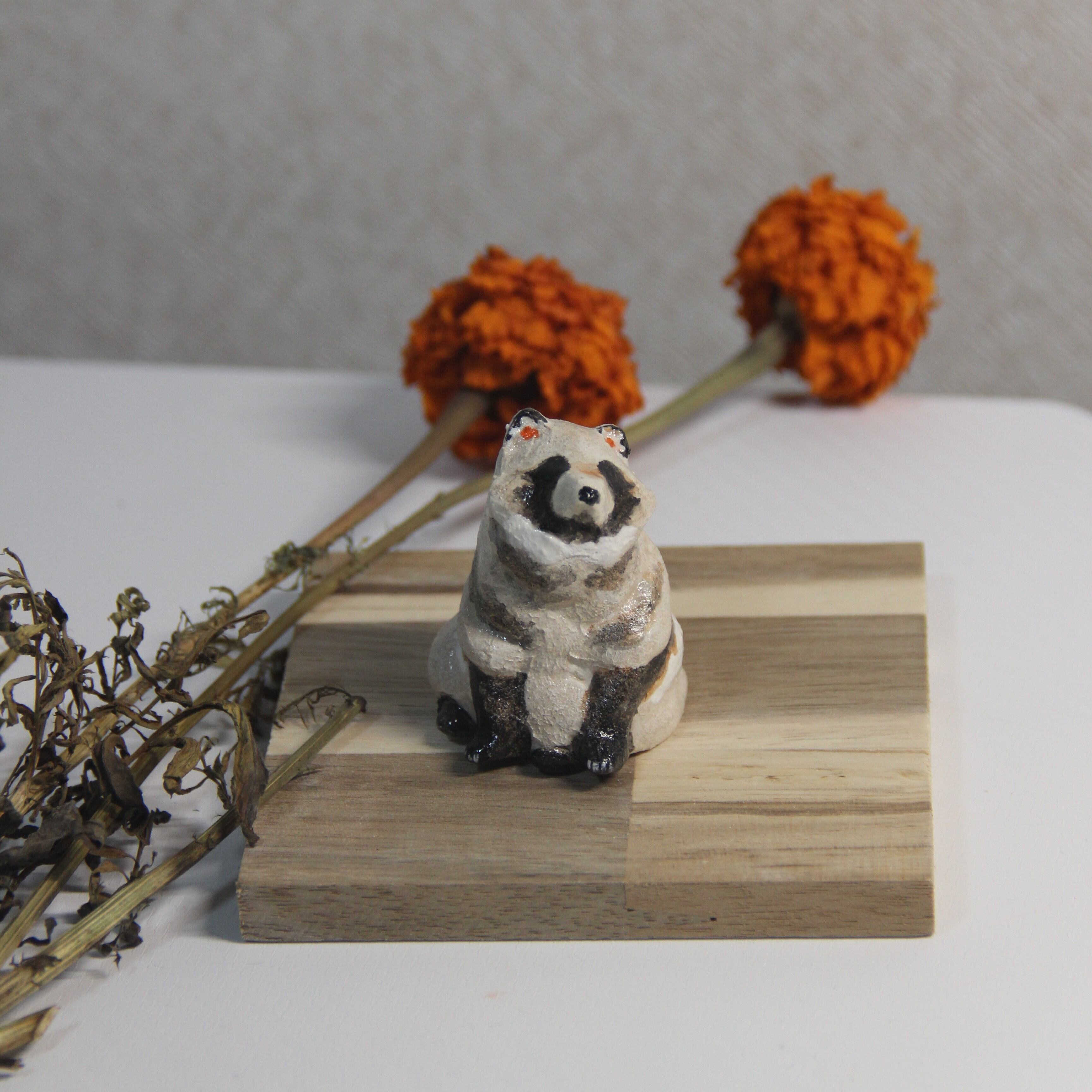 手びねりで一つ一つ作成した、オーブン陶芸のたぬきの置き物です。