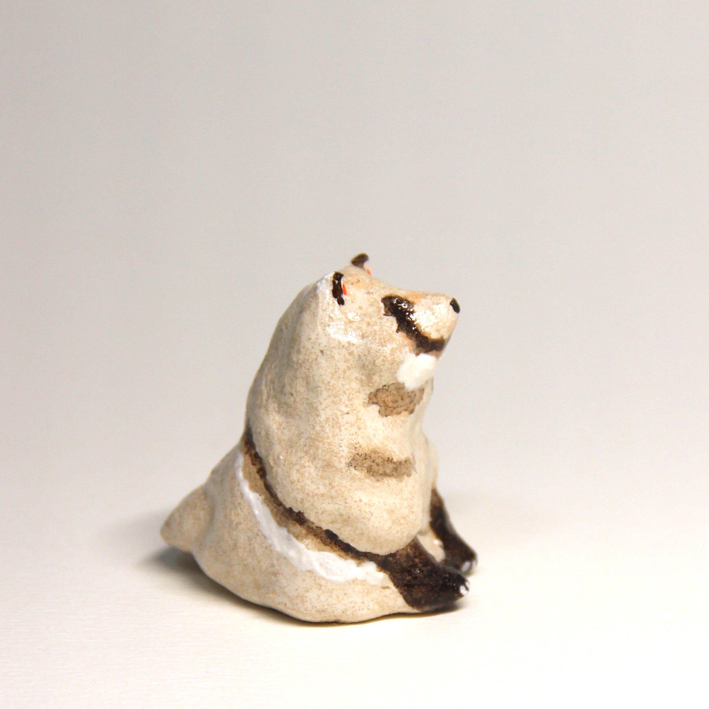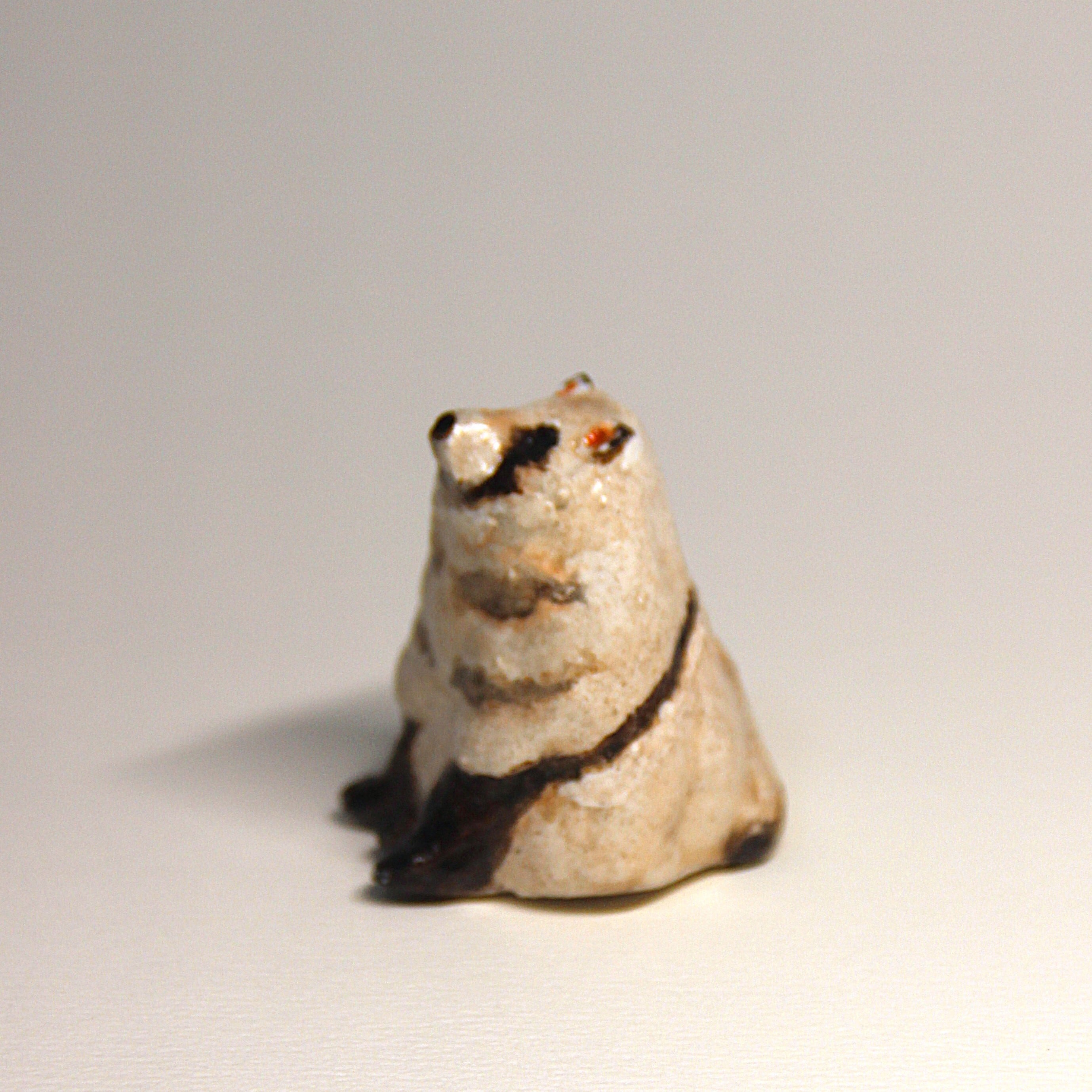 手びねりで一つ一つ作成した、オーブン陶芸のたぬきの置き物です。