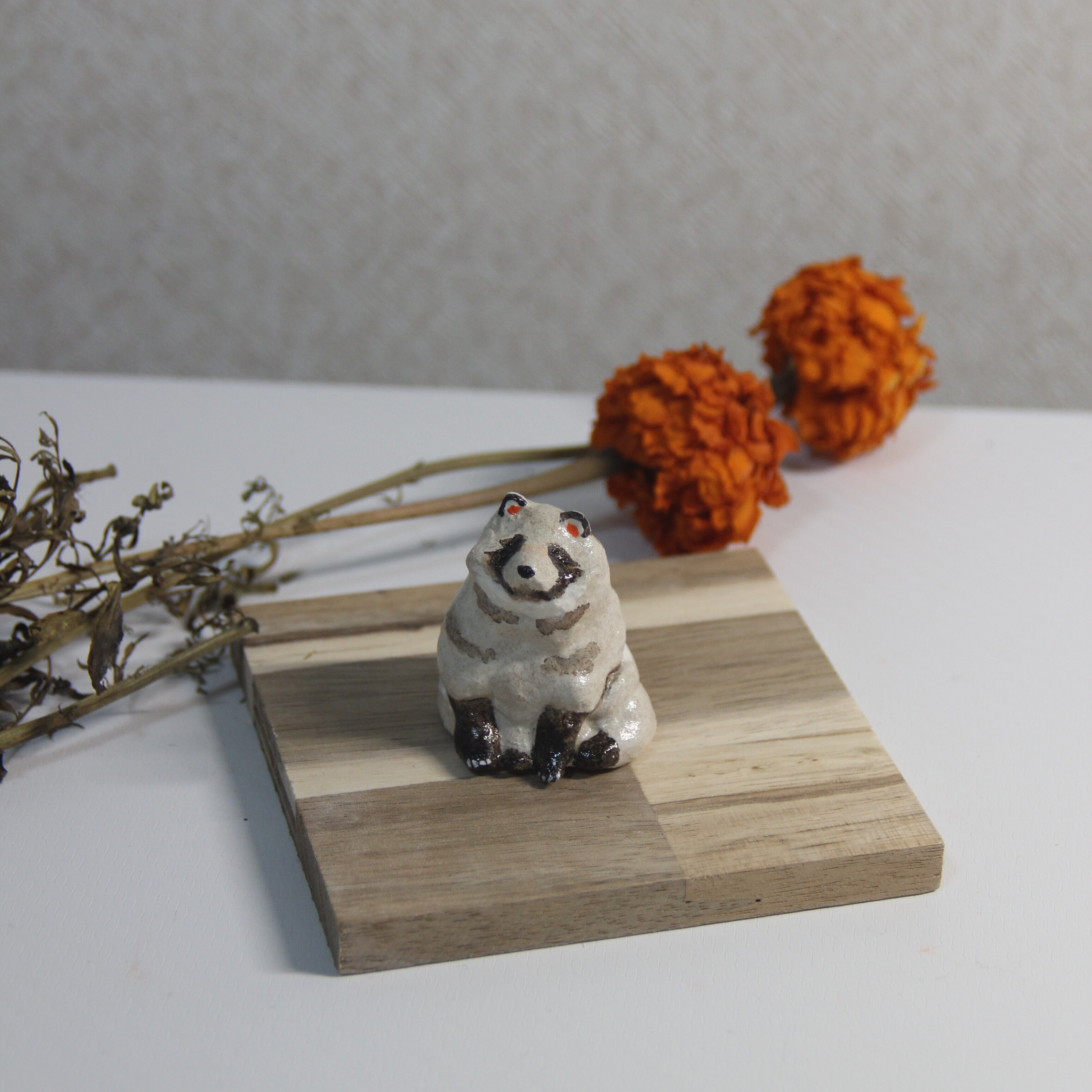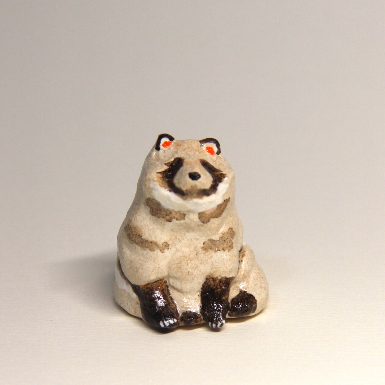手びねりで一つ一つ作成した、オーブン陶芸のたぬきの置き物です。