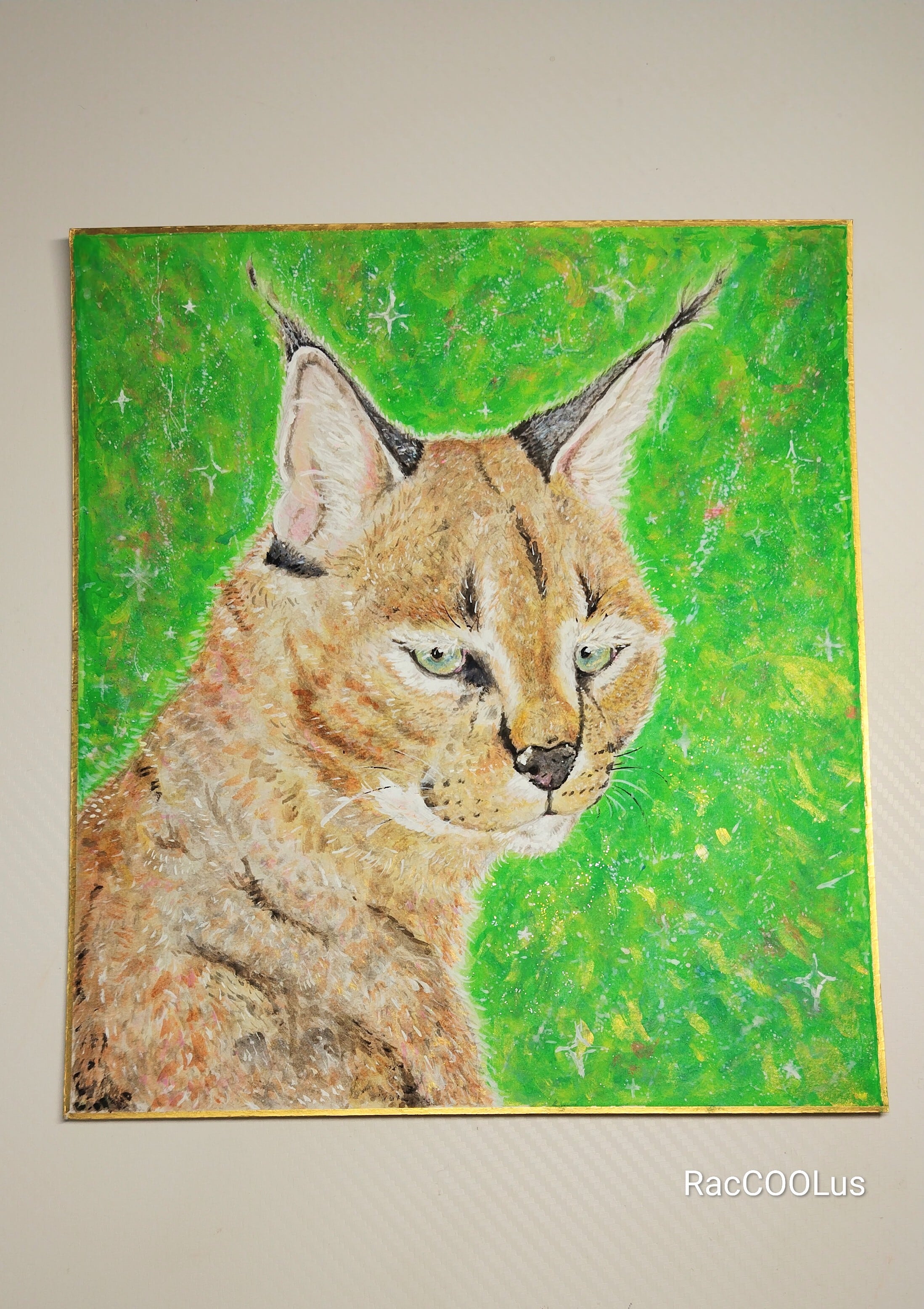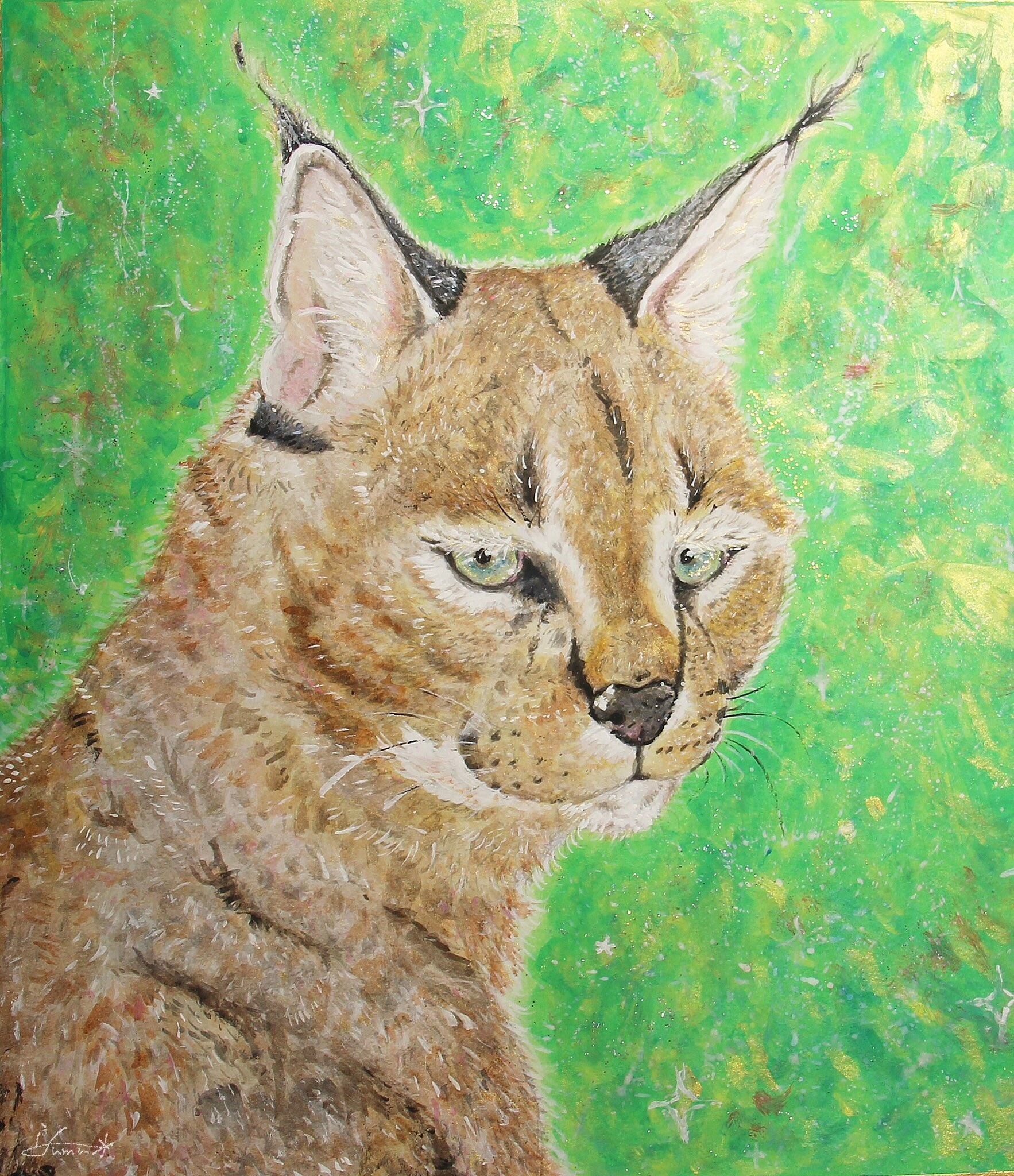 アクリル絵の具で描いたカラカルの絵画作品です。